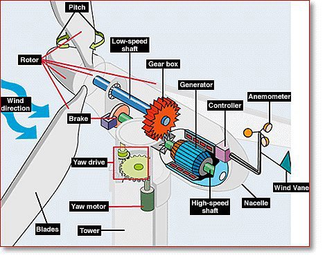 Nacelle: that holds gear box, generator, electronic control unit, yaw controller, brakes.